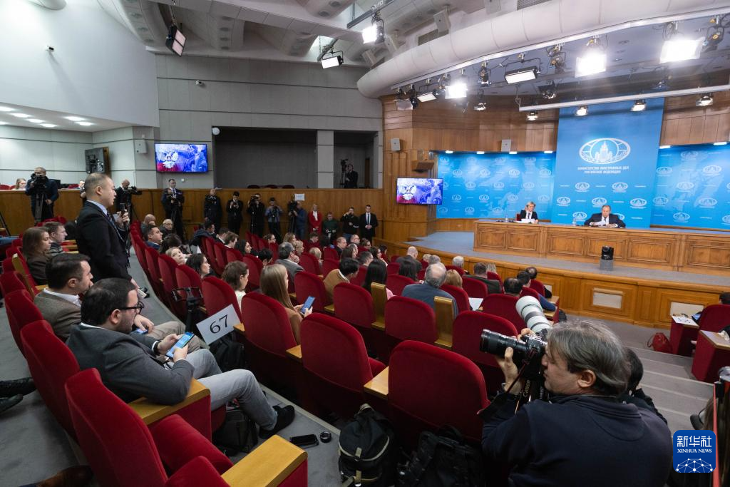 1月14日,在俄羅斯首都莫斯科,記者向俄外長(zhǎng)拉夫羅夫提問。新華社記者 白雪騏 攝