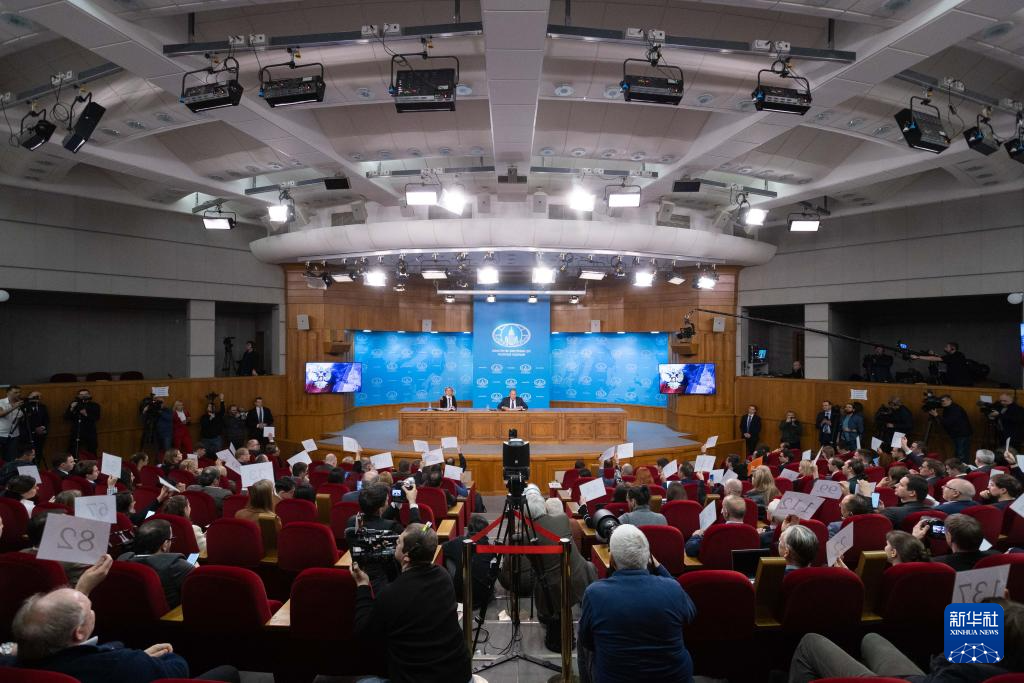 1月14日,在俄羅斯首都莫斯科,媒體記者舉手提問。新華社記者 白雪騏 攝