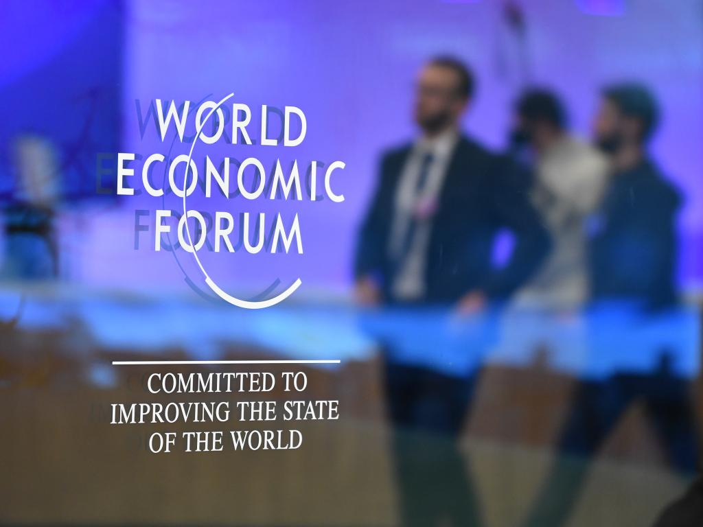 這是1月19日在瑞士達(dá)沃斯拍攝的世界經(jīng)濟(jì)論壇標(biāo)識。新華社記者連漪攝
