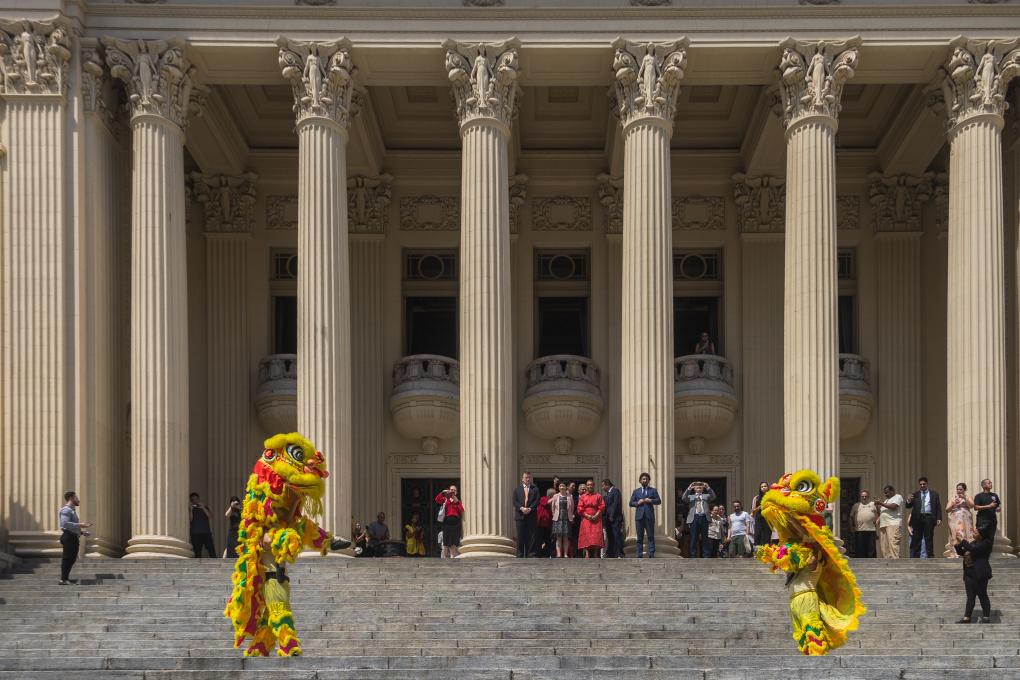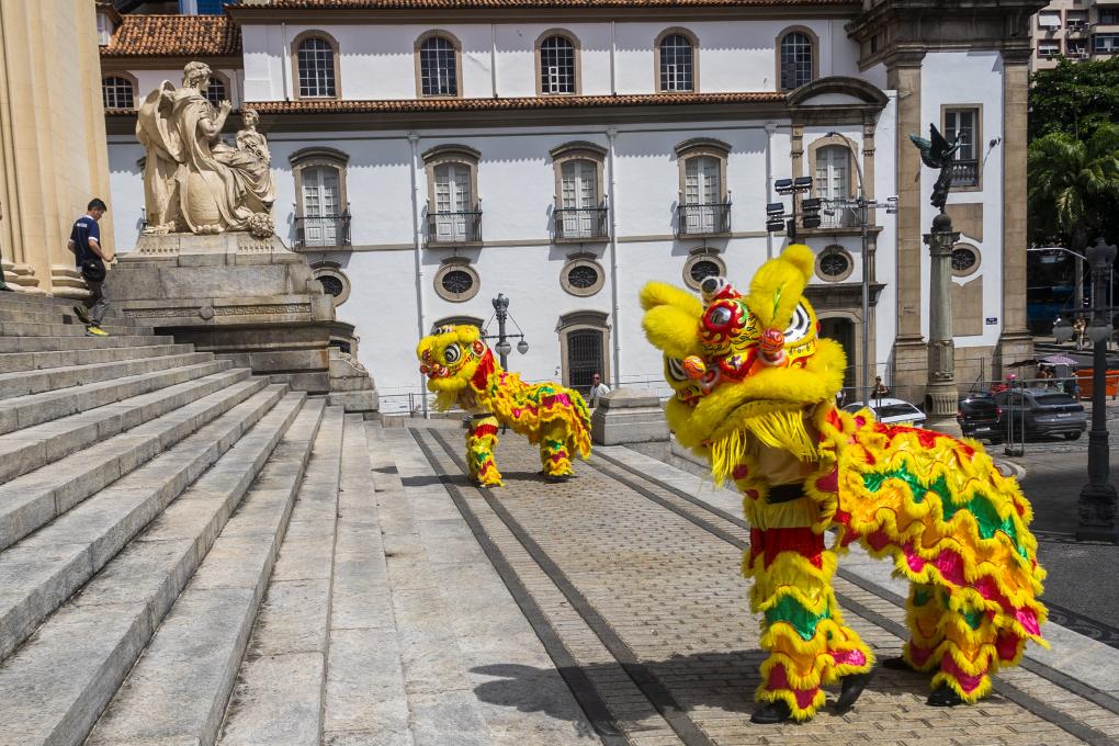 2月6日,中國(guó)農(nóng)歷正月初九,巴西里約熱內(nèi)盧州蒂拉登特斯宮(州議會(huì))大門外,里約州議會(huì)副議長(zhǎng)蒂婭·茹和中國(guó)駐里約熱內(nèi)盧總領(lǐng)事田敏用手中的毛筆共同為兩只舞獅點(diǎn)睛。瞬間,“獅子”舞動(dòng)起來,里約州議會(huì)中國(guó)農(nóng)歷新年慶典拉開帷幕。