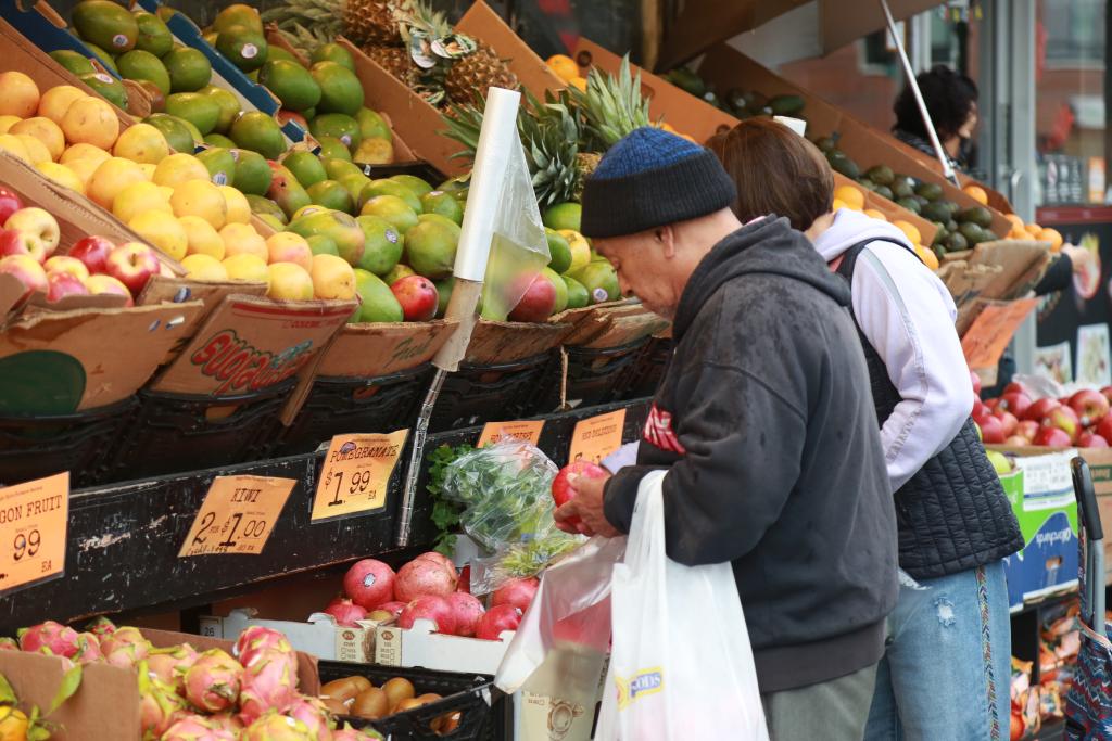 2024年12月11日,顧客在美國紐約一家超市挑選水果。新華社記者劉亞南攝