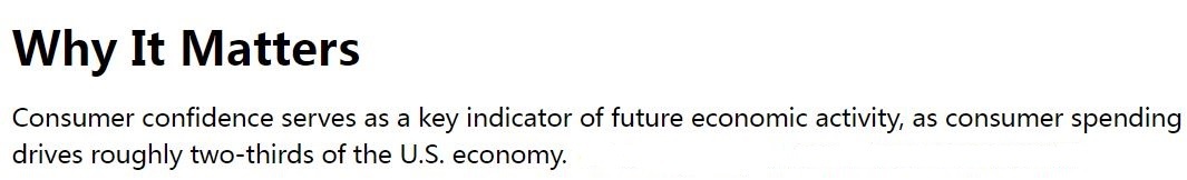 CCI既反映美國人對當前經(jīng)濟狀況的評估,也反映他們對未來六個月的展望,是預(yù)測美國未來經(jīng)濟前景的關(guān)鍵指標。