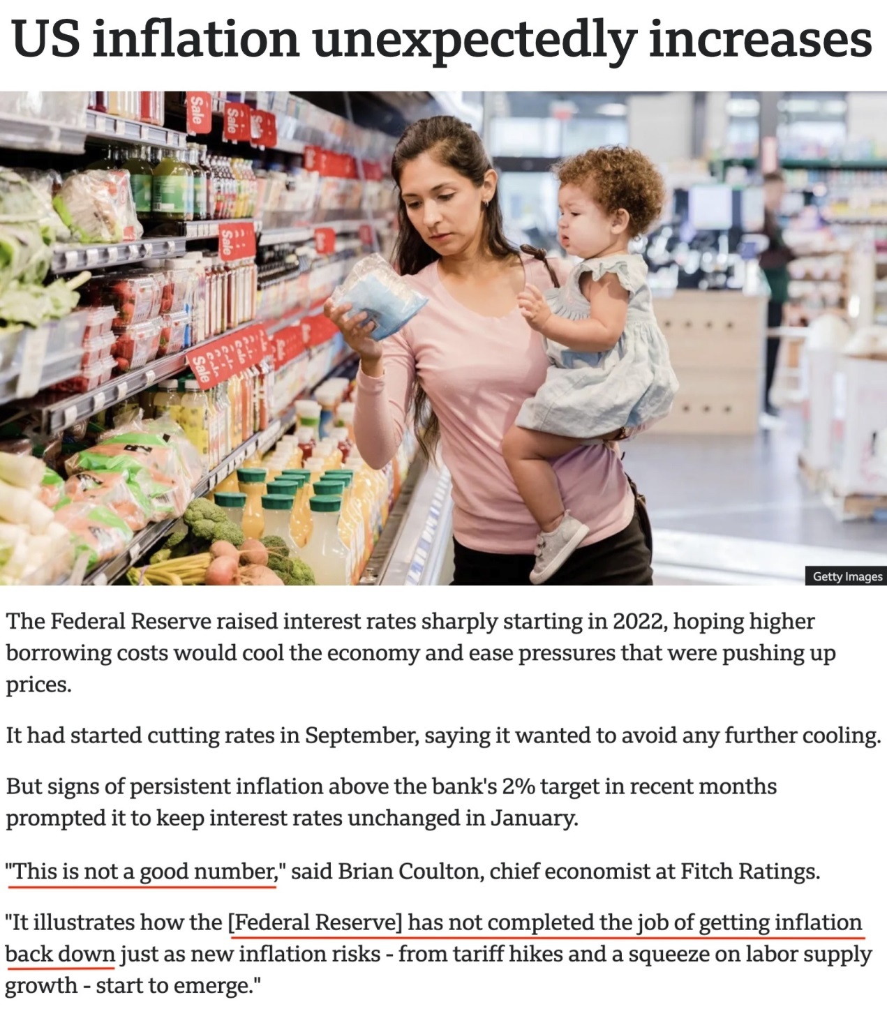 美國1月消費者價格指數(shù)(CPI)環(huán)比上漲0.5%,漲幅為2023年8月以來的最高水平;同比上漲3%,漲幅為去年6月以來的最高水平。