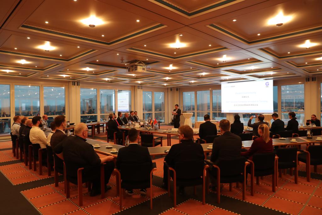 中國江蘇省太倉市2024年1月22日在德國北威州貝庫姆市為落戶的第500家德企伯曼集團(tuán)舉行授牌儀式。新華社記者杜哲宇攝