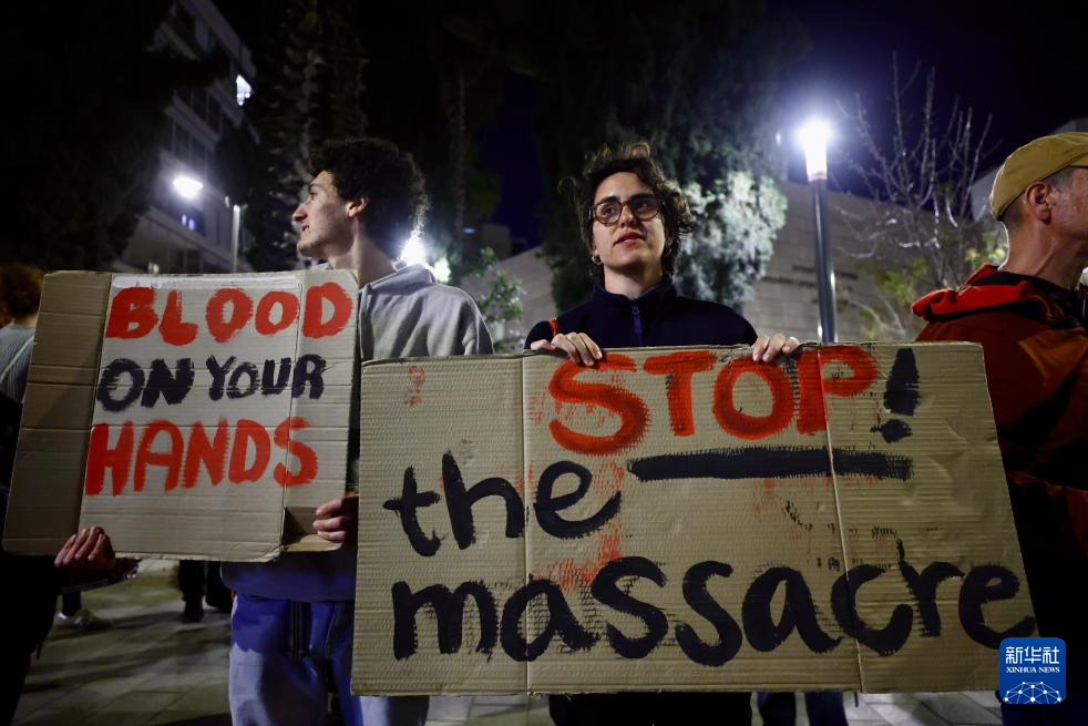 3月12日,民眾在耶路撒冷舉行游行,呼吁以軍在加沙地帶實現(xiàn)長期?;穑V乖诩s旦河西岸的襲擊和流血。新華社發(fā)(賈馬爾·阿瓦德攝)