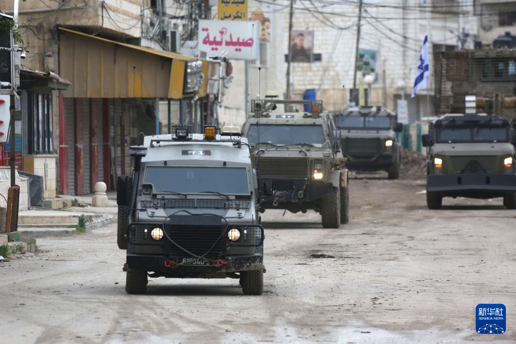 這是1月22日在約旦河西岸城市杰寧拍攝的以軍車輛。新華社發(fā)(尼達爾·艾仕塔耶攝)