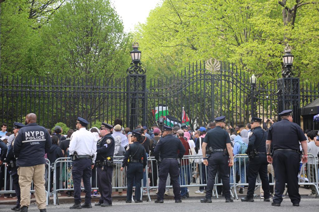 2024年4月30日,警察在美國紐約哥倫比亞大學外警戒。新華社記者 劉亞南 攝