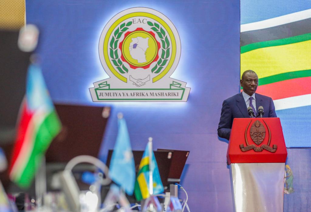 2月8日,東非共同體與南部非洲發(fā)展共同體在坦桑尼亞達累斯薩拉姆聯(lián)合舉行國家元首和政府首腦會議,討論剛果(金)東部局勢,并呼吁立即在剛果(金)?;?。圖為肯尼亞總統(tǒng)魯托出席會議。新華社發(fā)(赫爾曼·埃馬紐埃爾攝)