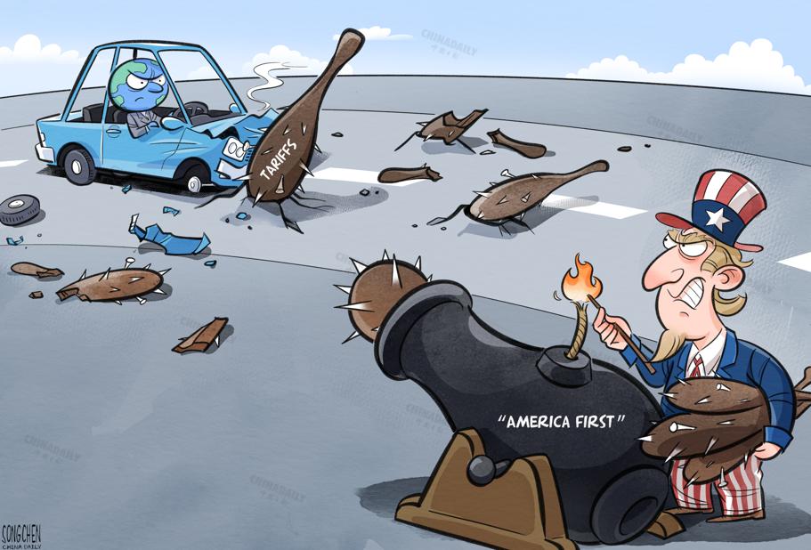 貿(mào)易保護(hù)砸自己的腳。(作者:中國日報 羅杰)