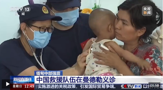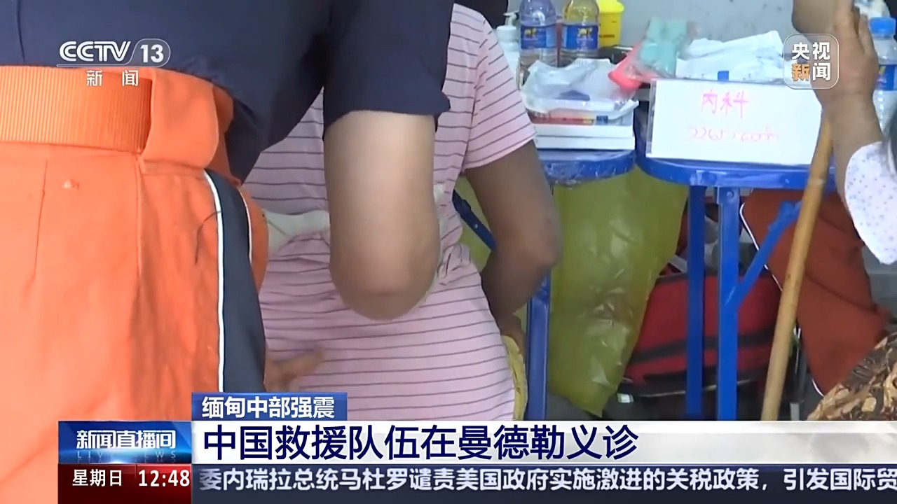 總臺央視記者 唐國榮:這里是緬甸曼德勒的多金堰地區(qū),來自中國救援隊(duì)、中國國際救援隊(duì)和中國香港救援隊(duì)的醫(yī)療隊(duì)員們,來到這里為緬甸地震中受災(zāi)的人員開展各種醫(yī)療救助服務(wù)。