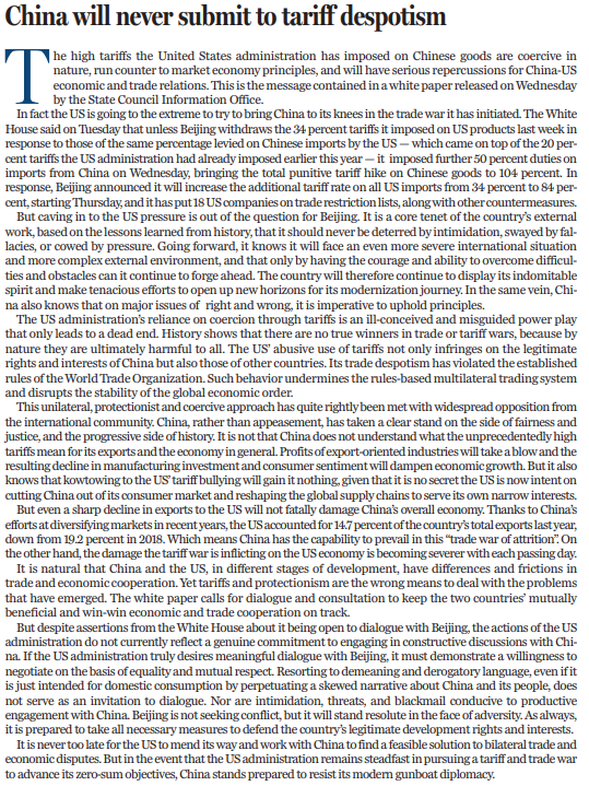 本文編譯自《中國日報(bào)》4月10日社論