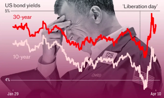 而眼下的問題在于,特朗普不可能簡單地宣布部分凍結(jié)關(guān)稅,然后就能指望債券市場的投資者——比如養(yǎng)老基金、財富管理公司和外國國家,會忘記他曾經(jīng)宣布過全球貿(mào)易戰(zhàn)。后者也不會簡單地無視中美兩國針鋒相對的一系列關(guān)稅措施的不斷升級。