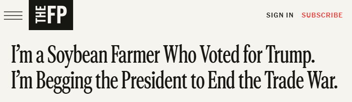 近日,拉格蘭德在The Free Press刊文表示,這場不斷升級的貿(mào)易戰(zhàn)對美國豆農(nóng)來說是個沉重打擊,因為中國是其最大的海外市場。對于許多美國大豆種植戶來說,這仿佛是2018年噩夢般場景的重現(xiàn)。那是特朗普總統(tǒng)的第一個任期,其采取的關稅措施使美國農(nóng)業(yè)損失了260億美元,僅大豆產(chǎn)業(yè)就損失了近200億美元。