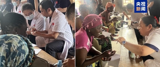 △援塞醫(yī)療隊(duì)各??平M進(jìn)行義診咨詢和指導(dǎo)用藥