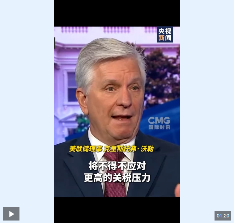 對于美國總統(tǒng)特朗普近來頻繁施壓美聯(lián)儲降息,沃勒表示,預(yù)計經(jīng)濟局勢將在今年下半年逐漸明朗,如果美國國內(nèi)勞動力市場嚴重惡化,美聯(lián)儲可能將考慮降息。