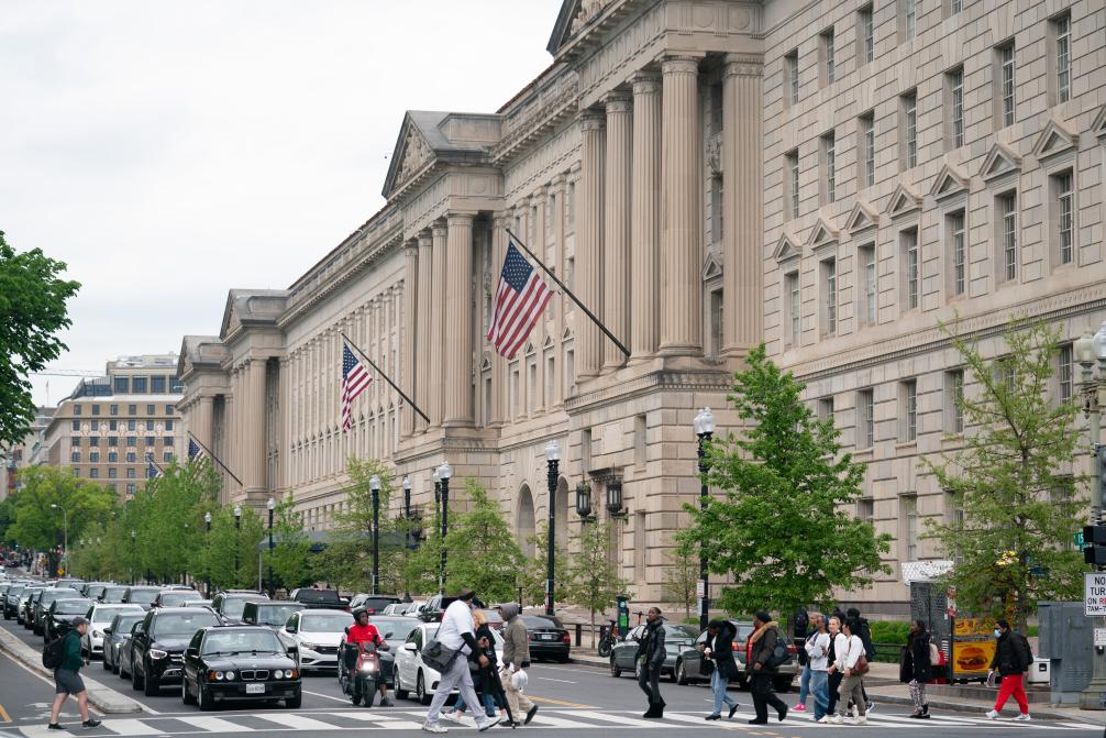 這是2024年4月25日在美國首都華盛頓拍攝的商務(wù)部大樓。新華社記者劉杰攝