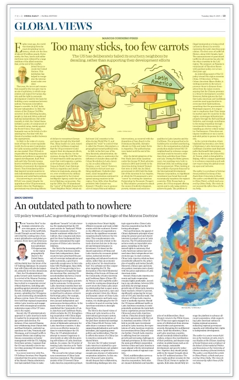 有意思的是,美國對拉美地區(qū)政策中有一個方面跟中國有關(guān)。美國國務(wù)卿、古巴裔美國人魯比奧今年在拉美多國訪問期間,要求它們同中國保持距離,認(rèn)為中國的存在是對西半球安全的威脅。但是,盧比奧忽視了一個事實(shí),那就是拉美國家需要機(jī)會來擺脫落后面貌——這也是美國政府忽視的事實(shí)。需要強(qiáng)調(diào)的是,中國將繼續(xù)向拉美國家開放市場,在“一帶一路”框架下拉動基礎(chǔ)設(shè)施項(xiàng)目建設(shè),并通過投資清潔能源或建設(shè)電動汽車產(chǎn)業(yè),為該地區(qū)的能源轉(zhuǎn)型做出積極貢獻(xiàn)。不僅如此,中國的合作從不附帶政治條件,也不會采取“胡蘿卜加大棒”的政策來追求自己的利益。