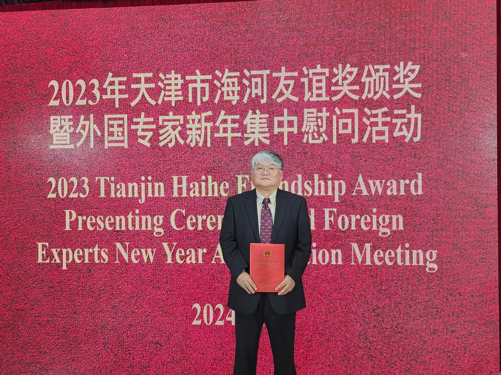 南開(kāi)大學(xué)商學(xué)院韓籍教授申光龍參加2023年天津市海河友誼獎(jiǎng)?lì)C獎(jiǎng)暨外國(guó)專(zhuān)家新年集中慰問(wèn)活動(dòng)(資料照片)。新華社發(fā) 受訪者供圖