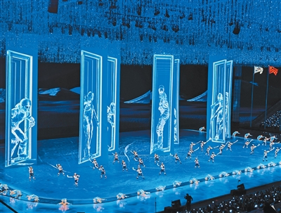 在哈爾濱第九屆亞洲冬季運(yùn)動(dòng)會(huì)開(kāi)幕式上,巴可投影機(jī)呈現(xiàn)精彩的舞美效果。