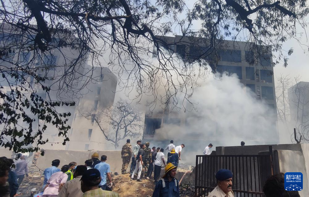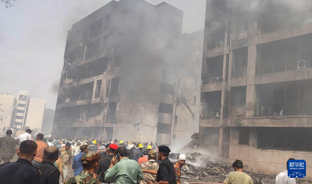 6月12日,在印度古吉拉特邦艾哈邁達(dá)巴德,人們在客機失事現(xiàn)場進(jìn)行救援。新華社/印度聯(lián)合新聞社