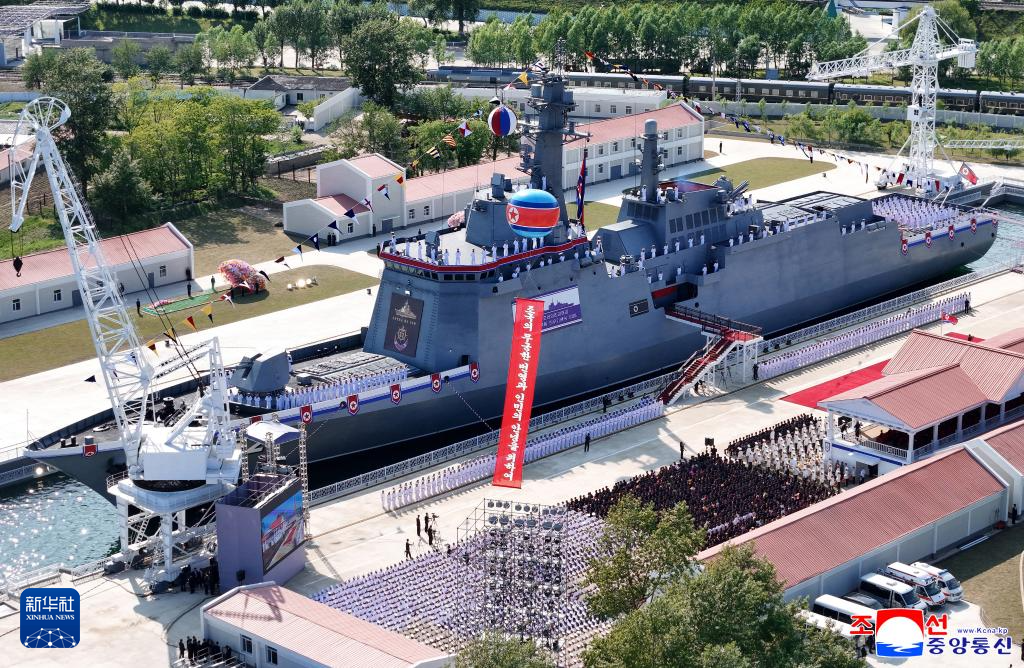 這是朝中社發(fā)布的朝鮮“崔賢”級(jí)二號(hào)艦下水儀式現(xiàn)場畫面。新華社/朝中社