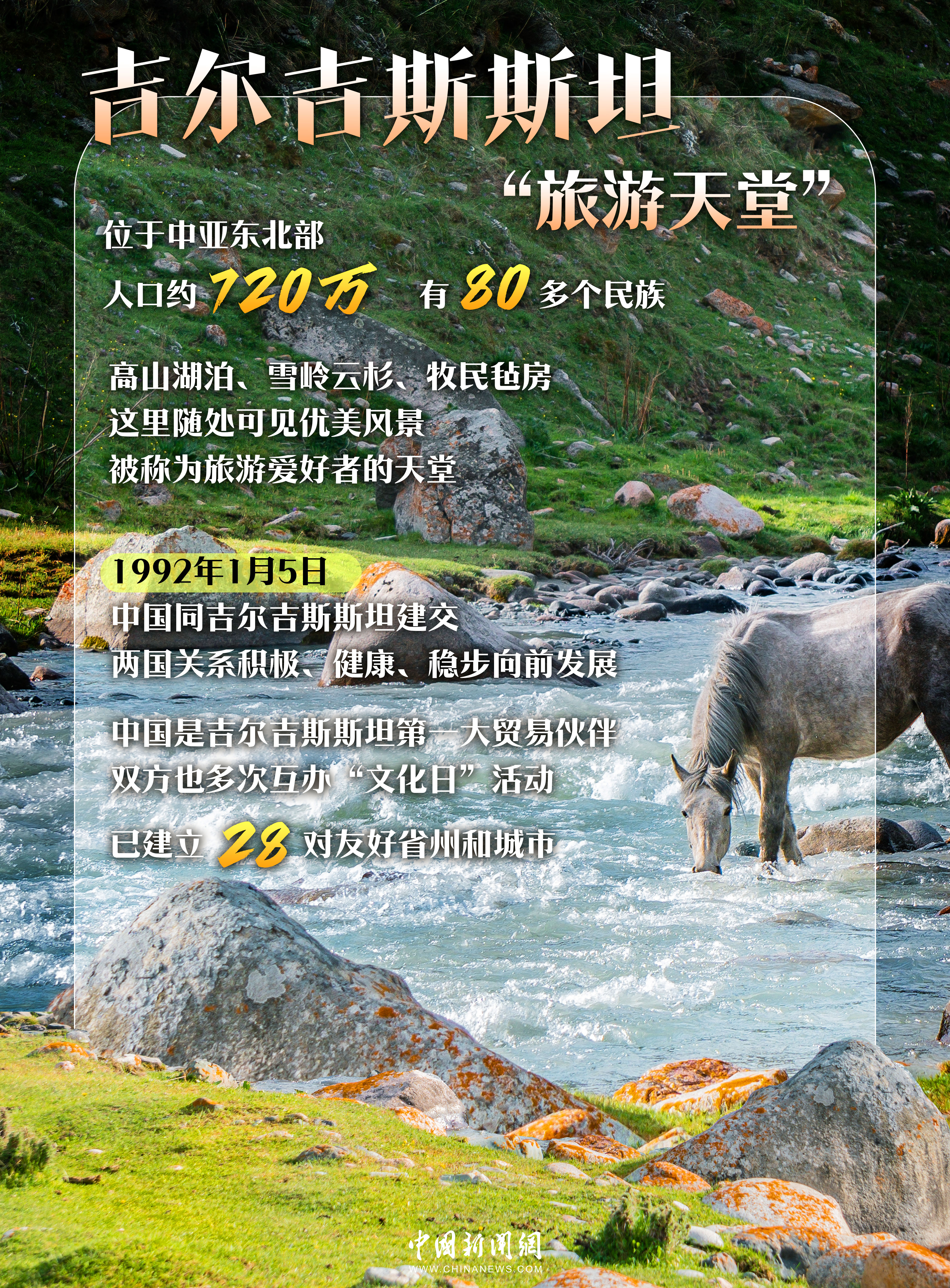 吉爾吉斯斯坦同樣自然環(huán)境優(yōu)美,被譽(yù)為“中亞小瑞士”,每年吸引著全球上百萬游客。