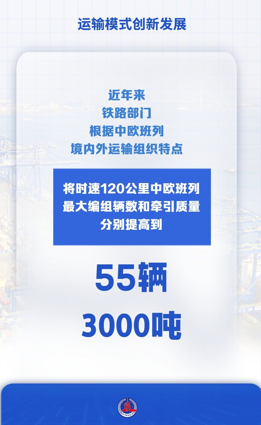 近年來,鐵路部門根據(jù)中歐班列境內(nèi)外運輸組織特點,將時速120公里中歐班列最大編組輛數(shù)和牽引質(zhì)量分別提高到55輛、3000噸。