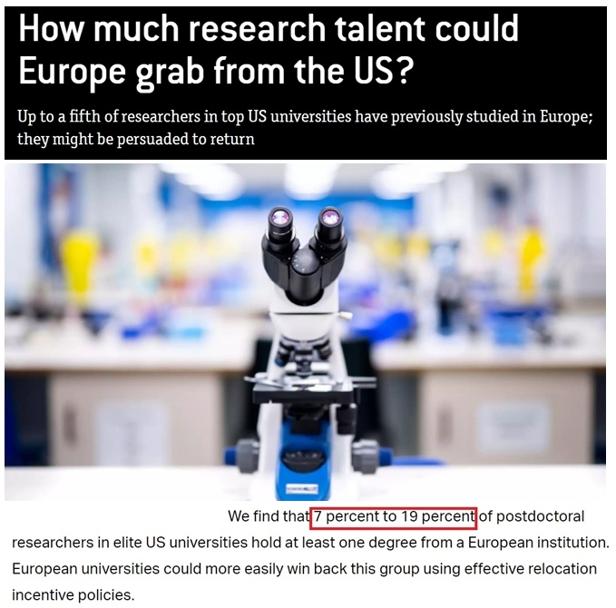 數(shù)據(jù)顯示,在美國(guó)頂級(jí)大學(xué)工作的博士后中,有7%到19%曾在歐洲獲得學(xué)位。對(duì)于這些人來(lái)說(shuō),歐洲有著更強(qiáng)的吸引力。