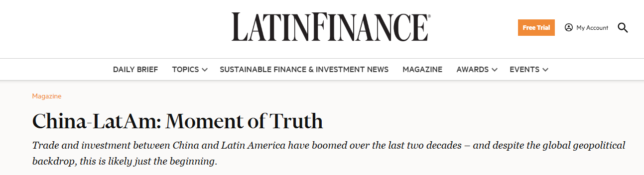 長(zhǎng)期關(guān)注拉美及加勒比地區(qū)發(fā)展的《拉美金融》雜志最近的一篇文章,聚焦了過(guò)去二十年拉丁美洲與中國(guó)之間貿(mào)易和投資的蓬勃發(fā)展。文章指出,盡管當(dāng)前全球地緣政治形勢(shì)復(fù)雜,但拉美與中國(guó)這種良好的發(fā)展勢(shì)頭可能僅僅是雙方合作的開端。