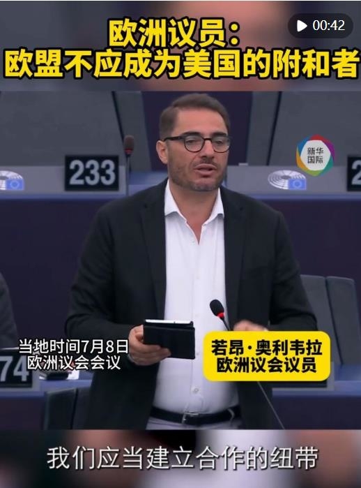 在8日的歐洲議會會議上,議員若昂·奧利韋拉在辯論中表示,歐盟不應(yīng)成為美國對華的對抗和緊張升級政策的“附和者”。他說,建立合作紐帶,實現(xiàn)互利共贏才應(yīng)是歐洲處理對華關(guān)系的基本態(tài)度。
