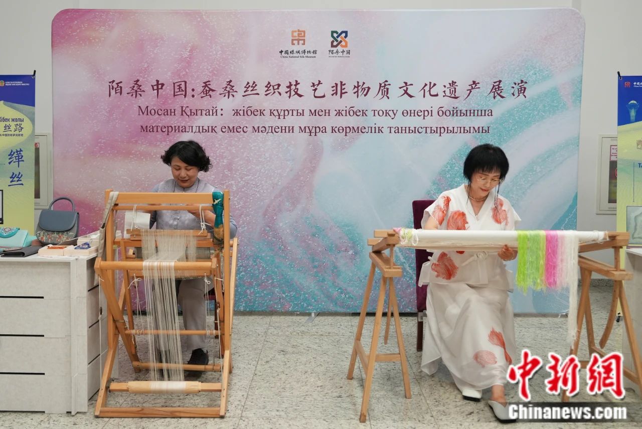 當(dāng)?shù)貢r(shí)間2025年6月16日,哈薩克斯坦“中國旅游年”開幕式在位于阿斯塔納的哈薩克斯坦國家博物館舉行。圖為手工藝者在非遺體驗(yàn)活動中演示緙絲、臺繡等傳統(tǒng)技藝。 中新社記者 單璐 攝