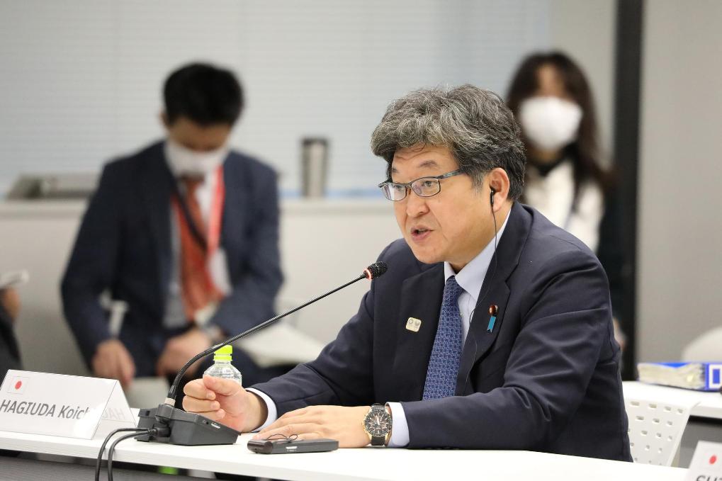 2020年9月24日,時(shí)任日本文部科學(xué)大臣萩生田光一在會(huì)議現(xiàn)場(chǎng)講話。新華社記者杜瀟逸攝