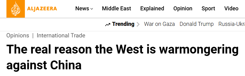 半島電視臺(tái)網(wǎng)站近日發(fā)表的一篇署名文章,分析了近二十年來西方對(duì)中國(guó)“敵意”的真正原因。文章說,中國(guó)的崛起對(duì)美國(guó)的影響,并非美國(guó)政治精英所宣稱的那樣。