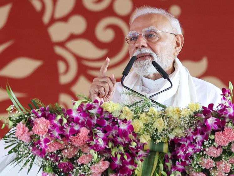印度總理莫迪8月2日在印度北方邦城市瓦拉納西的一個(gè)集會(huì)上發(fā)表講話。(圖片來(lái)自莫迪辦公室網(wǎng)站)
