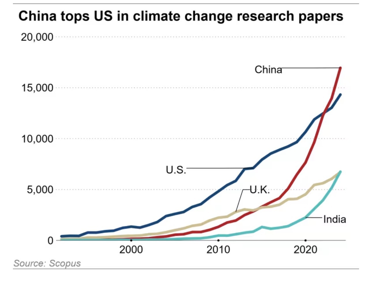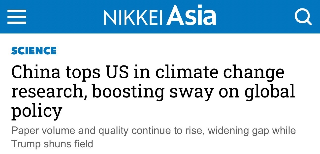 《日經(jīng)亞洲評(píng)論》22日發(fā)布的一篇文章指出,中國(guó)在2023年發(fā)表的氣候變化研究論文數(shù)量超過(guò)了美國(guó),并在次年擴(kuò)大了領(lǐng)先優(yōu)勢(shì)。這一趨勢(shì)凸顯了中國(guó)全球影響力的持續(xù)增長(zhǎng),與此同時(shí),美國(guó)卻在逐漸退出這一領(lǐng)域。