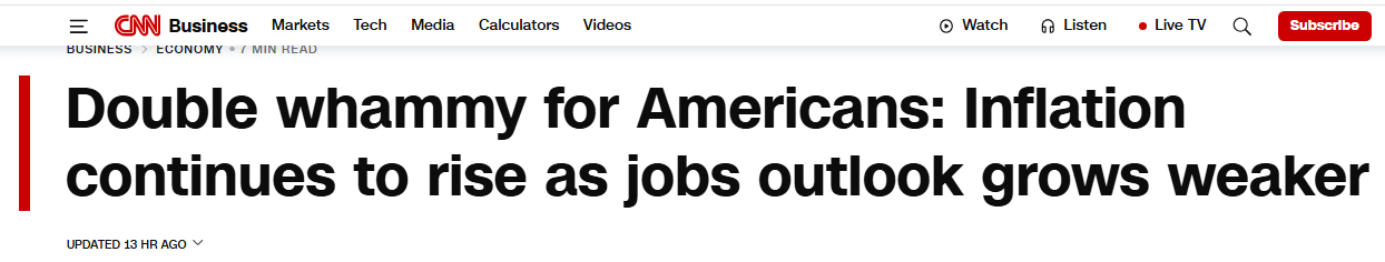 美國經濟正面臨 “通脹高企” 與 “就業(yè)降溫” 的雙重打擊。