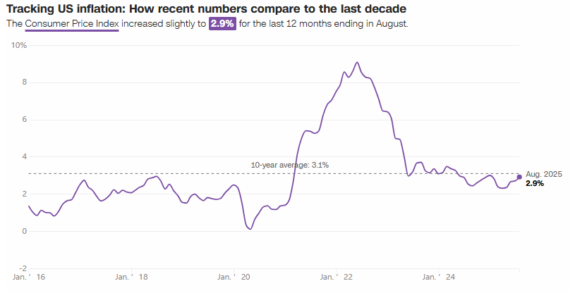 美國勞工統(tǒng)計局最新數據顯示,2025年8月消費者價格指數(CPI)環(huán)比上漲0.4%,年通脹率攀升至2.9%,不僅創(chuàng)下今年1月以來的最高水平,而且增速超過7月的2.7%。