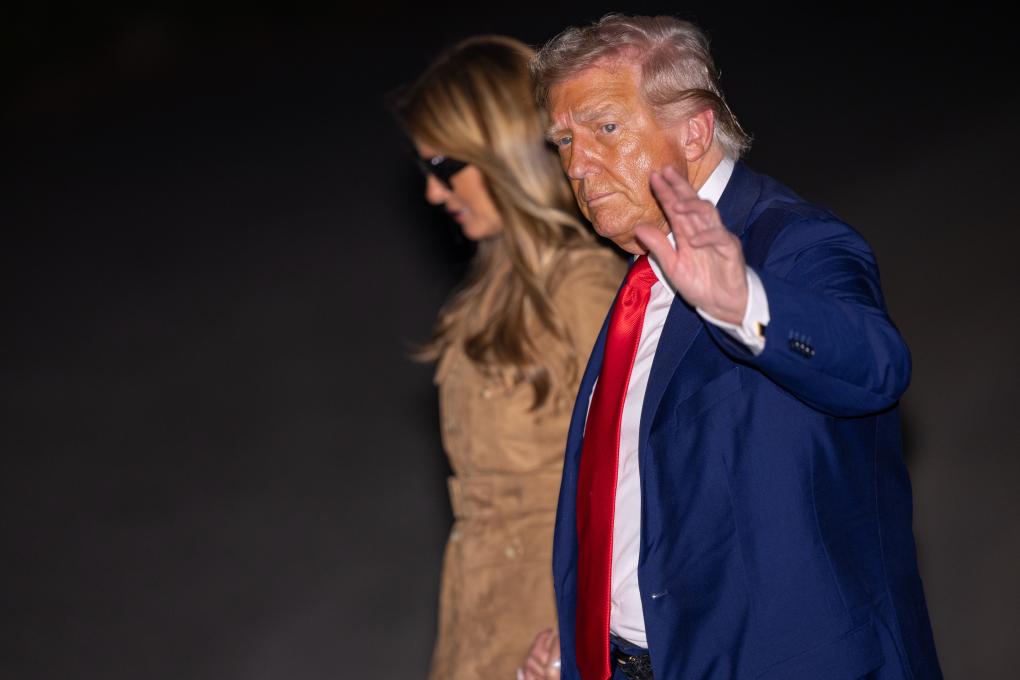 9月18日,在美國首都華盛頓白宮,美國總統(tǒng)特朗普和夫人梅拉尼婭在結(jié)束對英國的國事訪問后返抵白宮。新華社記者胡友松攝