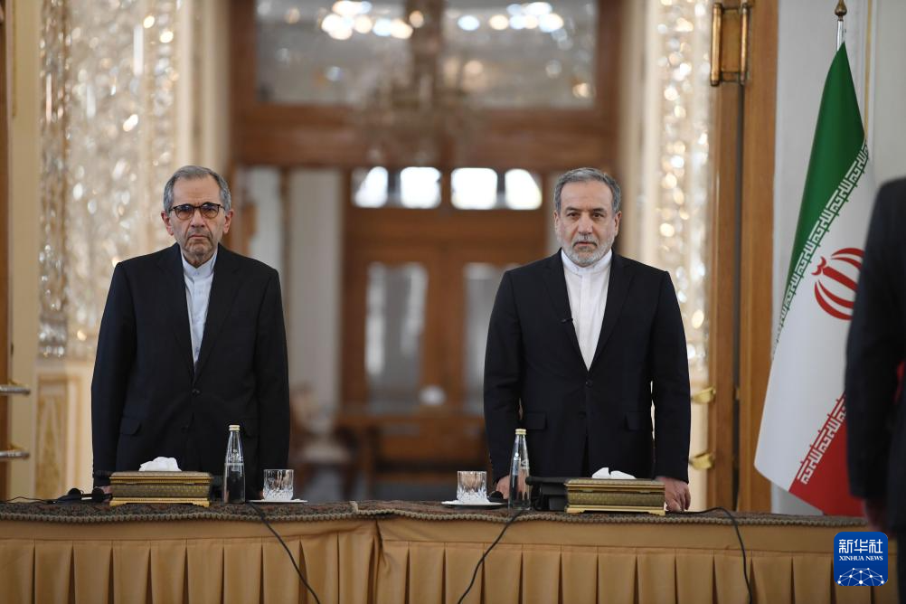 10月5日,在伊朗首都德黑蘭,伊朗外交部長阿拉格齊(右)對(duì)多國駐伊朗外交人員發(fā)表講話。新華社記者 沙達(dá)提 攝