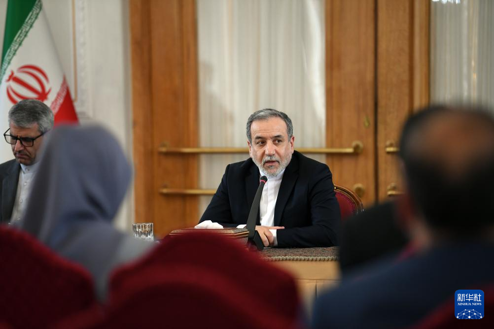 10月5日,在伊朗首都德黑蘭,伊朗外交部長阿拉格齊(右)出席與多國駐伊朗外交人員舉行的會(huì)議。新華社記者 沙達(dá)提 攝