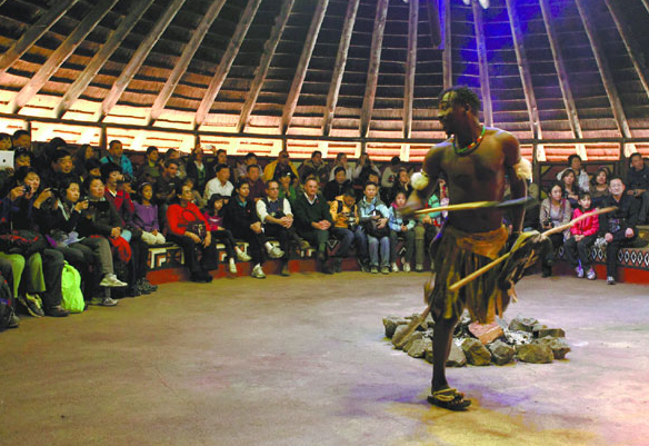 資料圖:中國游客在南非約翰內(nèi)斯堡郊外觀賞民族舞蹈表演