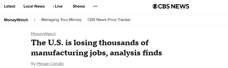現(xiàn)實(shí)數(shù)據(jù)也為這一觀點(diǎn)提供了有力佐證。美國哥倫比亞廣播新聞網(wǎng)站(CBS News)報(bào)道稱,8月份美國制造業(yè)崗位削減了1.2萬個(gè),4月份以來已累計(jì)減少4.2萬個(gè)崗位。美國進(jìn)步中心(CAP)直指原因就是特朗普政府大幅加征新關(guān)稅、強(qiáng)硬的移民政策和“大而美”法案。