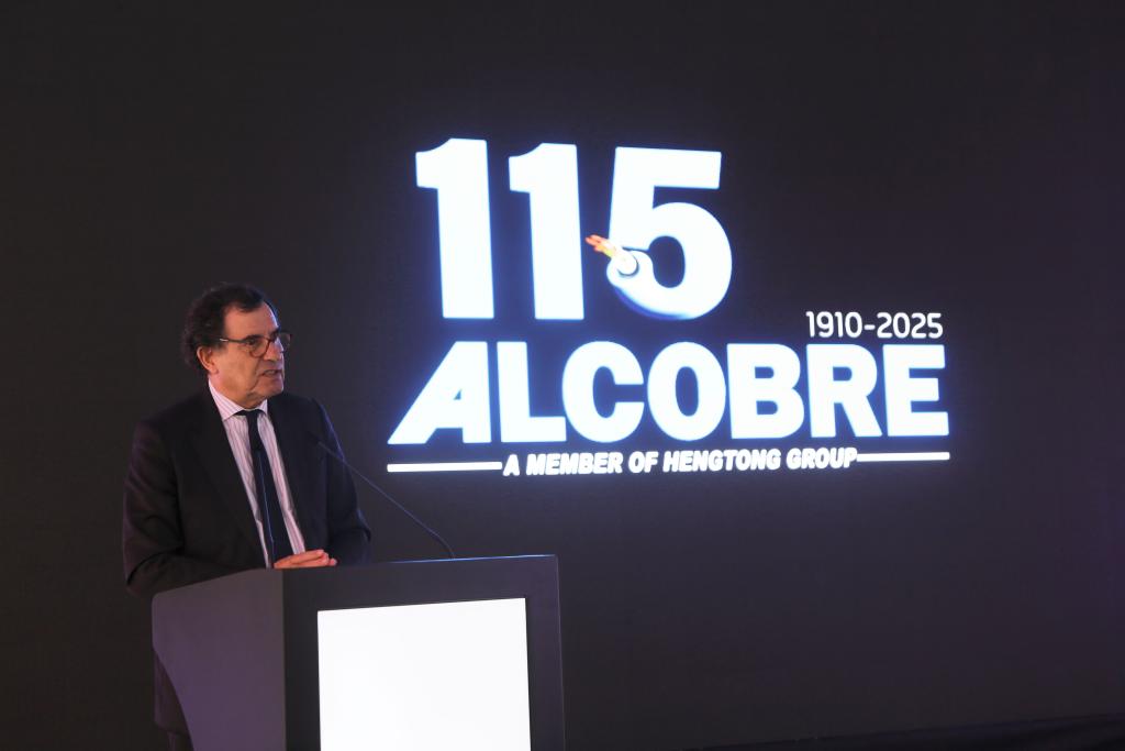 10月3日,葡萄牙經(jīng)濟兼國土融合部長曼努埃爾·卡斯特羅·阿爾梅達在葡萄牙北部奧瓦爾市舉行的阿爾科夫雷電纜廠115周年慶典儀式上致辭。新華社記者荀偉攝