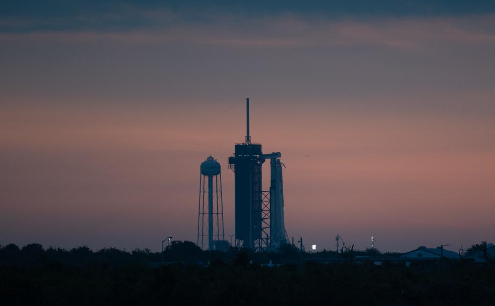 這是2020年5月27日在美國佛羅里達州肯尼迪航天中心拍攝的“獵鷹9”火箭和載人版“龍”飛船。新華社發(fā)(美國國家航空航天局供圖)