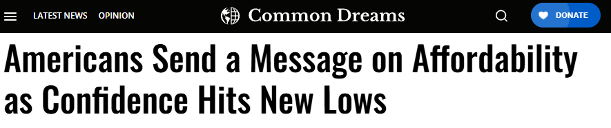 “基層合作組織”(Groundwork Collaborative)政策與倡導(dǎo)部門主管亞歷克斯·雅克茲指出,美民眾對經(jīng)濟(jì)的信心下滑源于實(shí)際生活壓力的加重。他認(rèn)為,當(dāng)前政府在經(jīng)濟(jì)管理上未能有效改善民生,反而導(dǎo)致家庭債務(wù)創(chuàng)下新高,物價不斷上漲,信心指數(shù)自然跌至低谷。