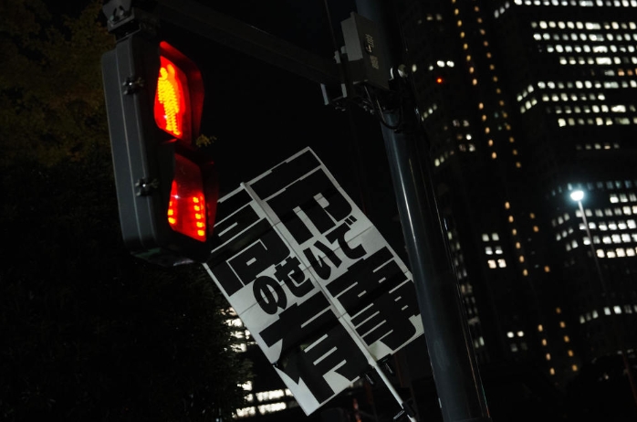 11月21日,在日本東京的首相官邸外,民眾舉起標(biāo)語參加抗議活動。新華社記者 賈浩成 攝