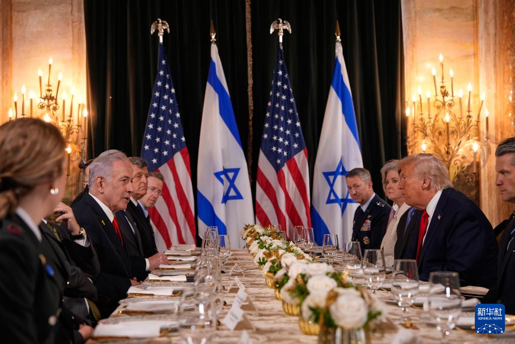 12月29日下午,美國總統(tǒng)特朗普在佛羅里達(dá)州海湖莊園會晤到訪的以色列總理內(nèi)塔尼亞胡。新華社/美聯(lián)
