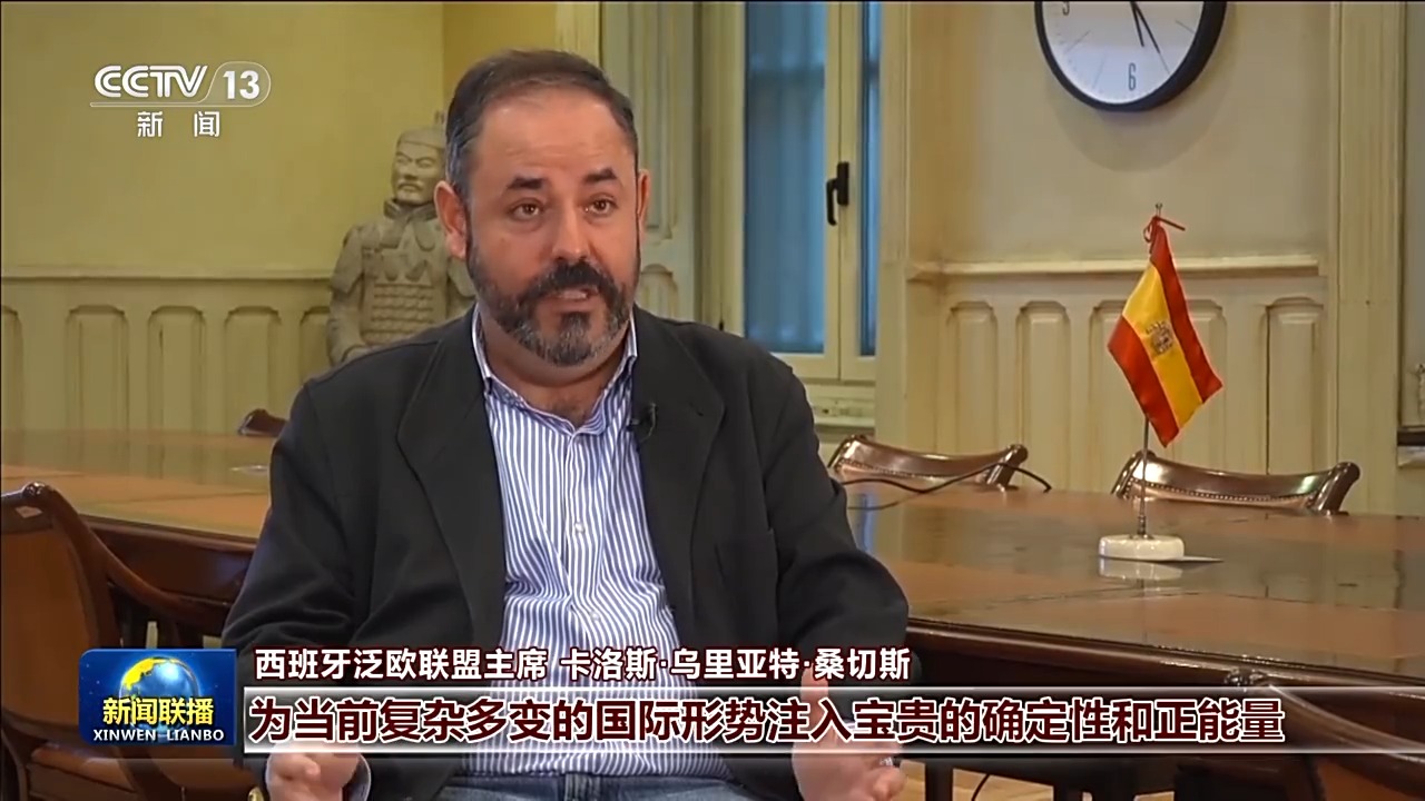 西班牙泛歐聯(lián)盟主席 卡洛斯·烏里亞特·桑切斯:習(xí)近平主席發(fā)表的新年賀詞為當(dāng)前復(fù)雜多變的國際形勢注入寶貴的確定性和正能量,習(xí)主席提出的一系列全球倡議立足于造福全人類。中國還積極應(yīng)對氣候變化,在可持續(xù)發(fā)展方面為世界提供了重要借鑒。中國堅(jiān)持合作共贏的理念,讓中國的發(fā)展成果惠及更多國家和人民。