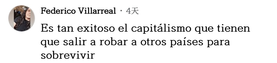 網(wǎng)友費(fèi)德里科·比利亞雷亞爾不禁感慨道:“資本主義如此成功,以至于他們必須去搶劫其他國(guó)家才能生存下去?!?/p>