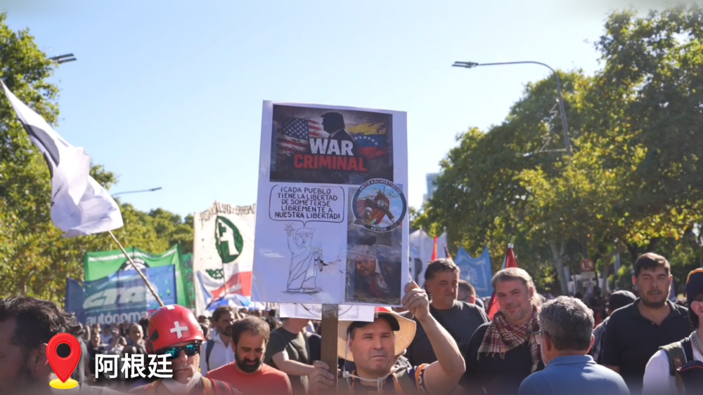 示威者高呼“立即釋放馬杜羅”和“人民不會屈服”等口號,要求立即釋放委內(nèi)瑞拉總統(tǒng)并譴責美國對委內(nèi)瑞拉的軍事打擊,稱“美國無視國際秩序,對整個世界構(gòu)成嚴重威脅”。